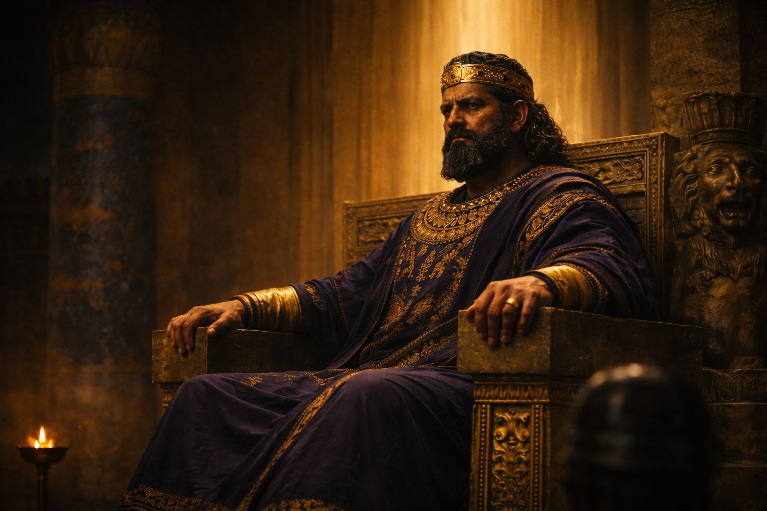 This is the first shot from the movie that introduces Nebuchadnezzar for the first Time, when he talks to his Nobles, before Daniel is revealed in the film.